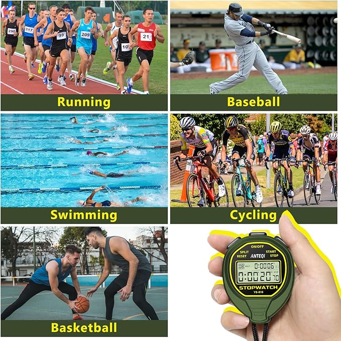 - Waterproof&Silent: The IPX7 waterproof stopwatch has a waterproof depth of 50 meters and can be used in water, rain, and bathing. Equipped with a 47-inch lanyard (neck strap), it is lightweight, small in size, easy to hold, and convenient to carry. It is the perfect equipment for coaches and referees to train in swimming, running, rugby, basketball, football, and more