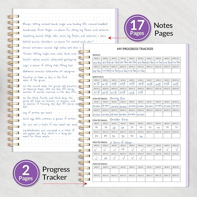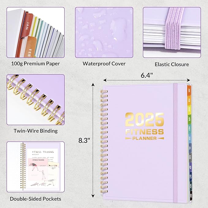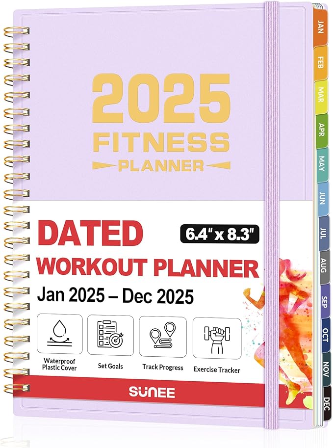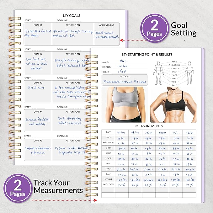 - Compact and Practical - With an A5 size (6.4" x 8.3") which makes it easy to stick in your gym bag. It includes elastic strap and double-sided pocket for convenient organization. With 100gsm premium paper, enjoy a smooth writing experience. Fitness planner 2025 includes Starting Point & Results-2Page | Goal Setting-2 Page | Track Your Measurements-2 Page | Monthly Page-30 Page | Fitness Log-53 Page | Weekly Page-53 Page | Notes-17 Page. Keep you organize and fit throughout 2025. Easy to use