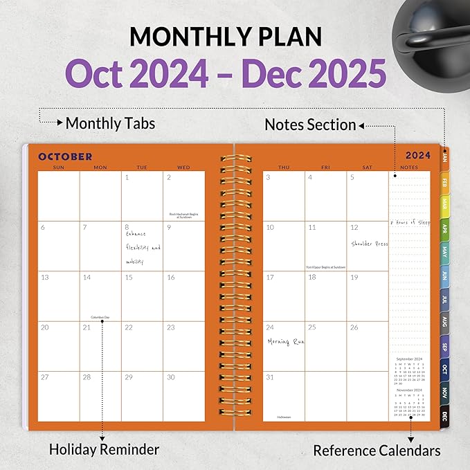- Full-Page Calendars - Featuring full-page calendars 15-month from October 2024 to December 2025 including 3 bonus months (Oct-Dec 2024). Total 30 monthly pages stay organized and motivated with 2025 fitness planner tailored for fitness enthusiasts. Easily log workouts, set goals, and track progress over time. Spacious layout offers clarity and focus, helping you maintain consistency and achieve your health objectives with confidence.