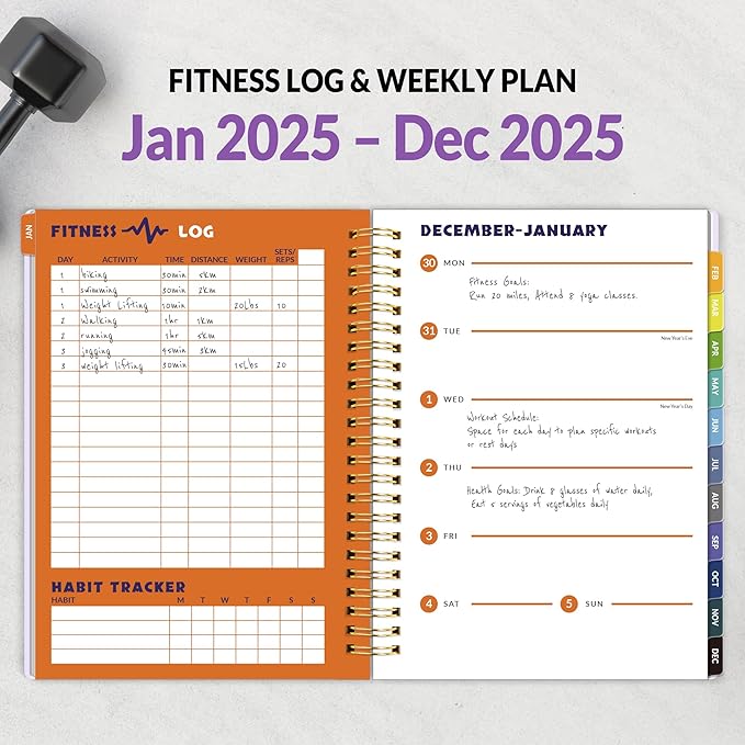 - Fitness Log and Week Plan - 2025 Workout Planner stay organized and record your gym workouts with this comprehensive fitness planner. It provides 53-Fitness Log pages and 53-Week Plan pages dedicated to habit trackers and log exercises, sets, reps, weights, allowing you to monitor your progress over time.