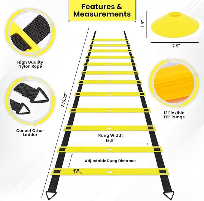- Our Sports Agility Ladders is Ergonomically Designed and made up of High-Quality Nylon Material, Providing you Best Experience and Tangle Free