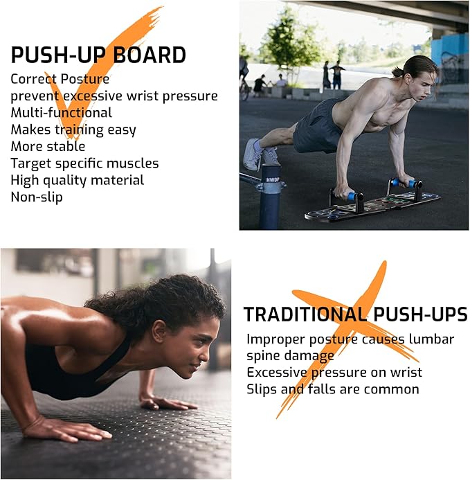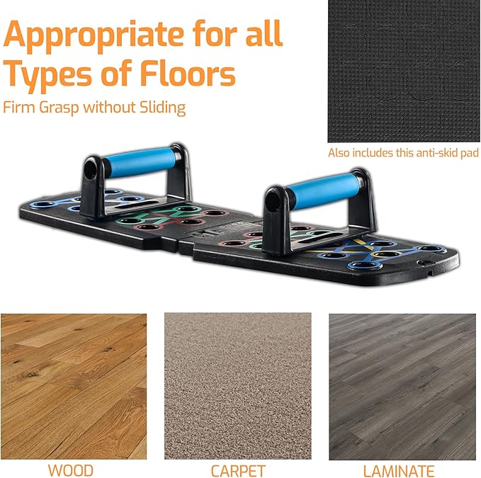 - [NON-SLIP HANDLES FOR ALL SURFACES]: This push up stand is equipped with premium grade, sturdy handles and a non-slip textured surface compatible with all floor types, ensuring maximum safety and proper adherence during intense workouts. The convenient grip improves your technique and reduces pressure on your wrists, while minimizing the risk of injuries!