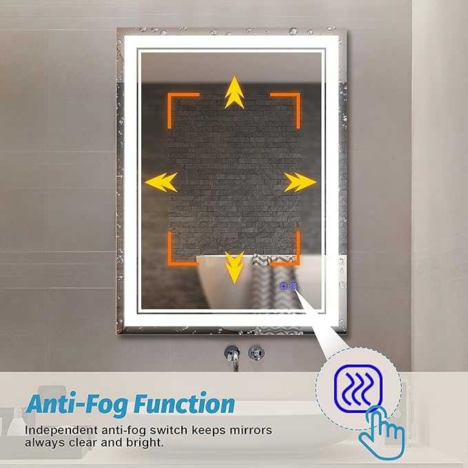 - DEFOGGING: The Independent Anti-fog Button Keeps Mirror Clear When The Anti-fog Function Is Turned On, You Never Worry About Not Being Able To Use It When Taking A Shower. The Memory Function Defaults To The Last Used 3 Color Temperature Brightness