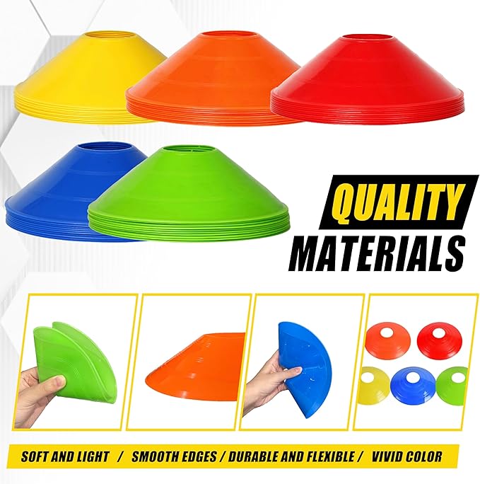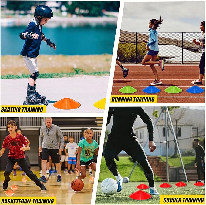 - 【MULTI-PURPOSE SPORTS CONES】These football training equipment widely used in various sports such as soccer, rugby, basketball, skating, etc. The training cones help improve footwork, dribbling and overall game performance. A great gift for kids, coaches, athletes or anyone else who loves sports!