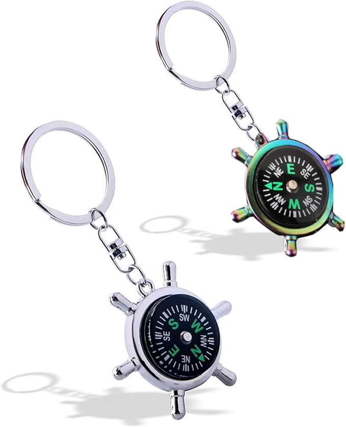 - Package include 2pcs compass keychain, 1pc is silver, 1pc is dazzling color, very cute and pretty.