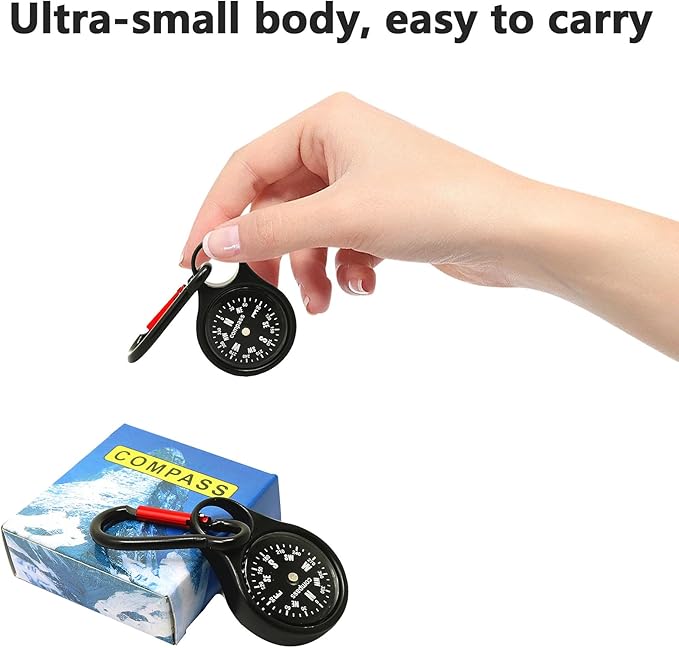 - PACKAGE CONTENT -- You will receive a keychain Compass , measuring about 9.2x3.7x1.2cm / 3.62x1.45x0.47inch. Perfect size for both adults and kids. You can hang the compass on your backpack or belt so you can always check your direction.