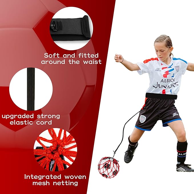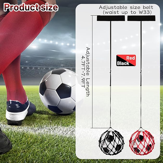 - UPGRADED COMBO: You will receive 2 pieces of the stylish red & black combo soccer training nets with adjustable waist straps. Well made and high strength elastic cords for quick rebound, enable you to train effectively!