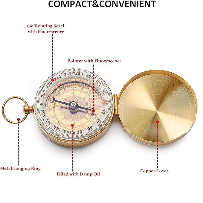 - RETRO DESIGN: This gold compass a classic retro zinc alloy metal design, adding a touch of retro charm and exuding a classic and timeless beauty.