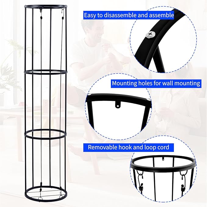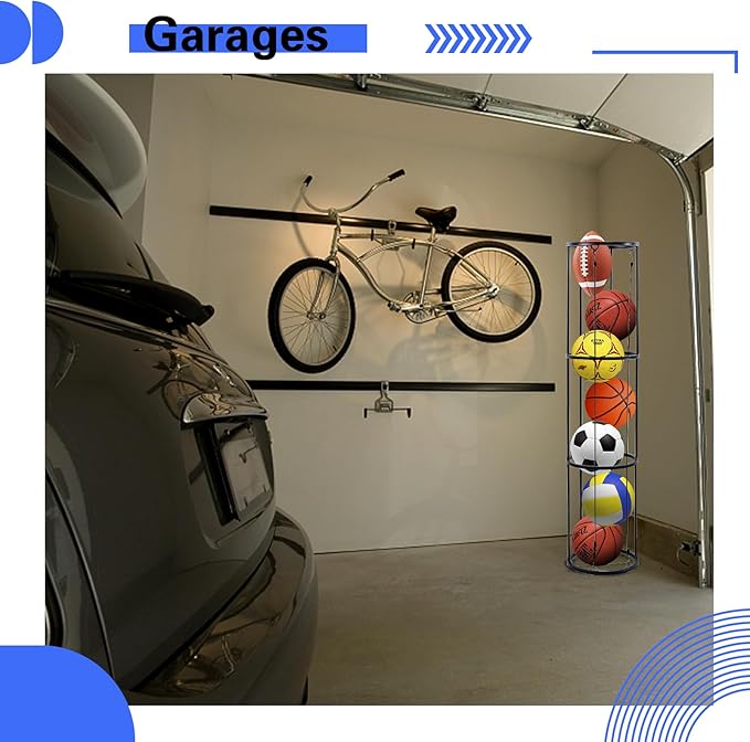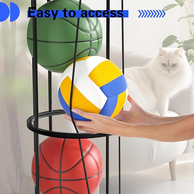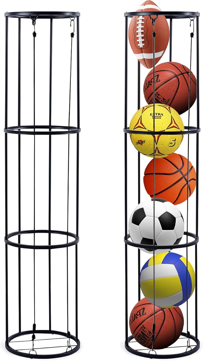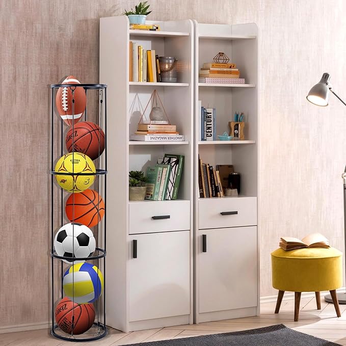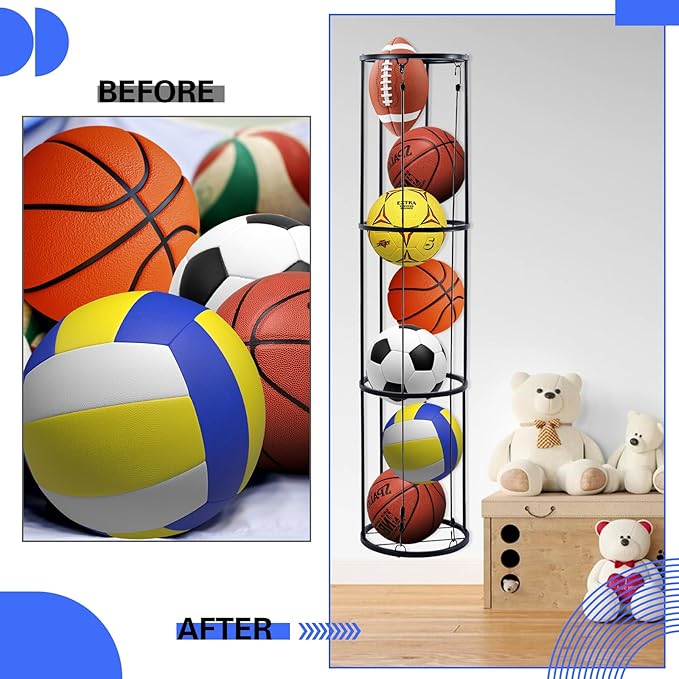 - 【Sturdy Metal Material】The vertical ball rack is made of high-quality iron. It’s strong, good stability, good resistance to corrosion, humidity, oxidation and other environmental factors. Suitable for use in various settings such as the garage, living room, kids' room, or balcony.