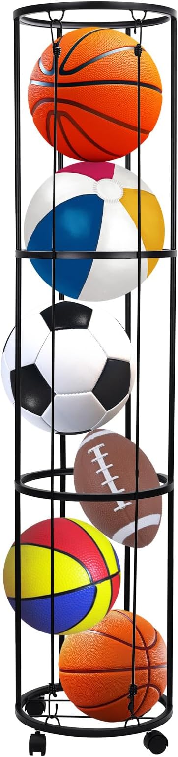 - Package Content: You will receive 1 piece of garage vertical ball rack, is designed with 3 layers. Accessories includes 12 tubes, 4 wheels, 4 bases, 2 ropes, 1 instruction manual, 8 silver screws, 8 studs, 1 screwdriver, 2 black screws, 2 expansion tubes, 4 glue points and 1 wrench. After installation can meet your ball storage needs.