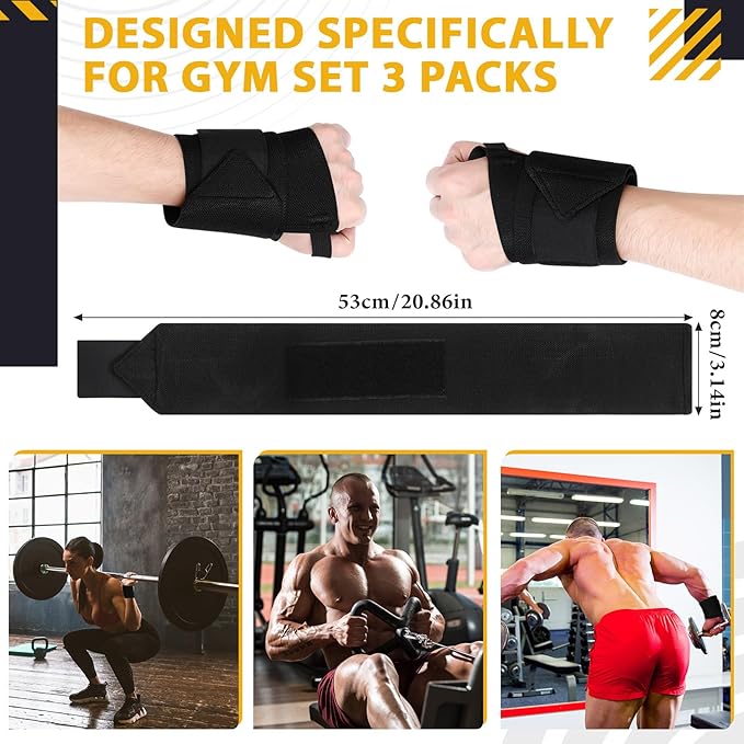 • Ultimate Wrist Support and Comfort: the gym set comes with weight lifting wrist wraps, made from polyester fibre, approximately 3.15 x 20.87 inches in size; The straps offer ideal wrist support, allowing you to adjust the tension as you see fit; You can tighten or loosen the straps to your desired restriction, without causing discomfort or circulation obstruction due to stiff edges; Ensuring your wrists are supported throughout your workout