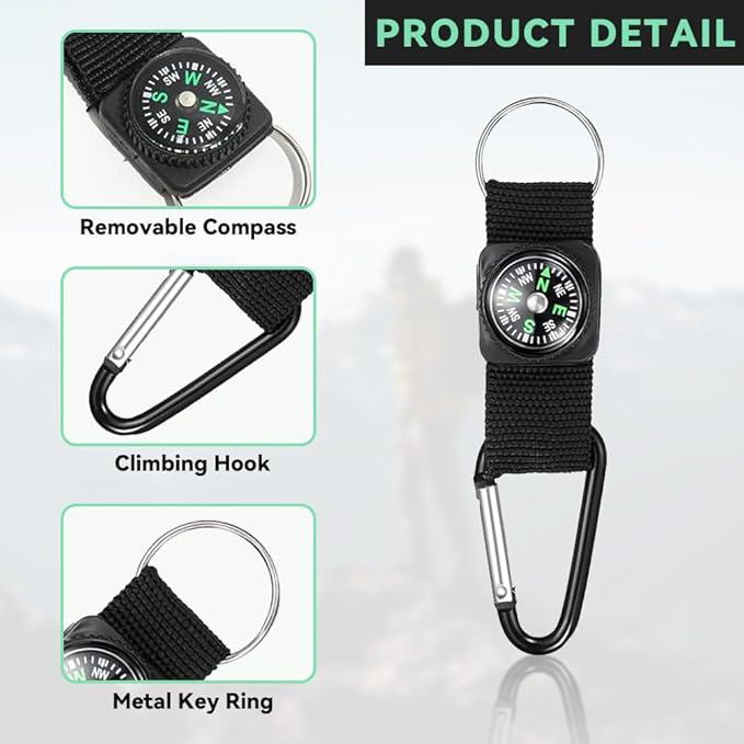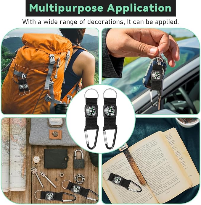 - Portable Size: The compass metal buckle is of suitable size and can be clipped on school bags, backpacks, water bottles, keys and small bags, bringing convenience to your outing use.