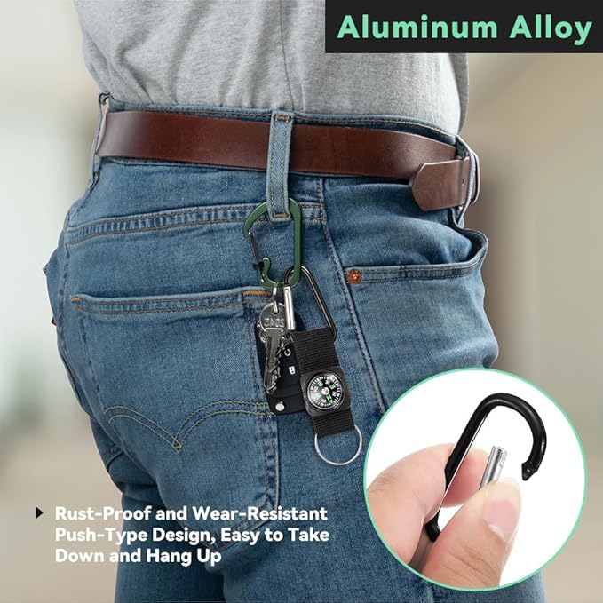 - Wear-Resistant Material: The belt clip toy with compass is mainly made of aluminum, which is lightweight, sturdy, safe and reliable, and the surface is oxidized, not easy to fade and rust, allowing boy and girl scouts to play easily.
