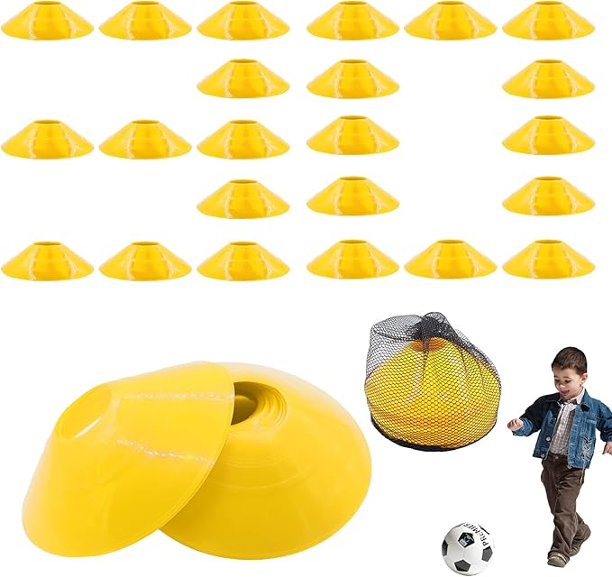 - Value package: you will receive 30 pieces yellow disc cone with sturdy mesh tote bag with drawstring keep cones organized and ease of storage and portability. Sufficient quantity to meet your daily sports training needs.