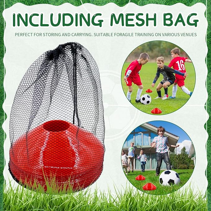 - Value package: you will receive 30 pieces red disc cone with sturdy mesh tote bag with drawstring keep cones organized and ease of storage and portability. Sufficient quantity to meet your daily sports training needs.