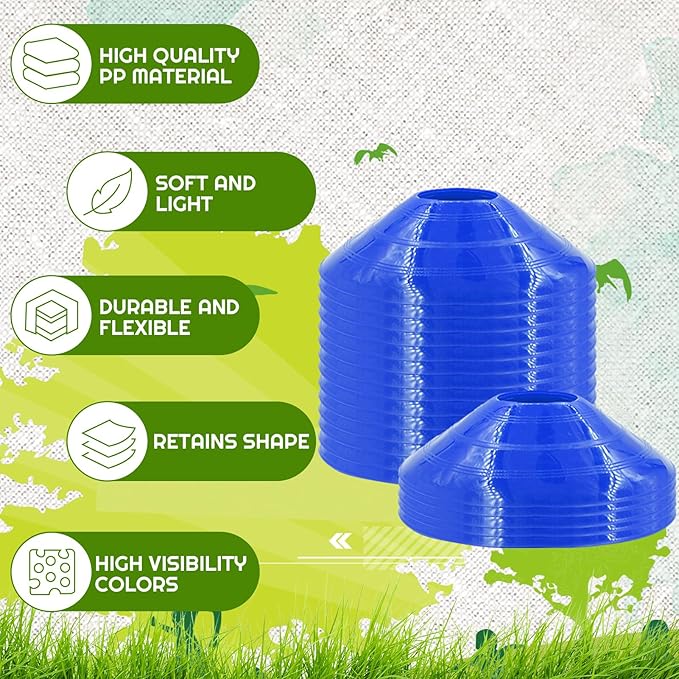 - Wide application: lasting soccer cones is primarily used for flexibility training for obstacles designs, Ideal for soccer, football, baseball, basketball, skating, skateboard, training equipment, coaching, drills. while still serving as flexible and durable markers for boundary lines, training courses, and drills.