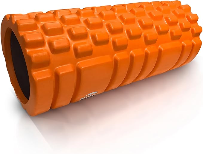 - Medium density muscle roller is comfortable to use - making it easy for beginners , but still effective at penetrating the soft tissue layer of tired muscles . Soft enough to use while in pain from lower back injury , sciatica or plantar fasciitis .