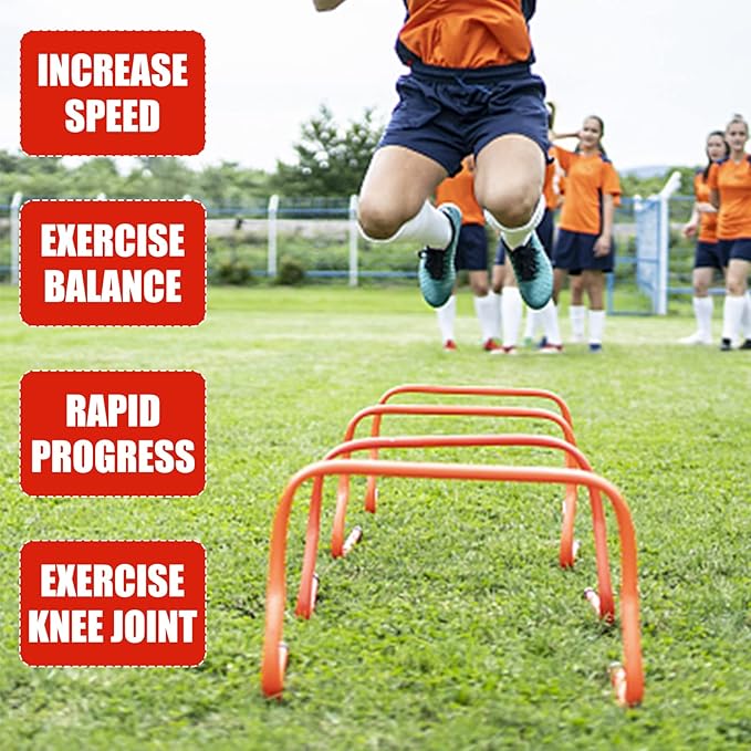 • 【9 inch Agility Training Hurdles】you will get 4pcs speed hurdles for agility training, 9" heights. Perfect equipment set for an enhanced knee lift and quick stepping, improves your speed, balance, and agility. You can take your training to another level with Direct Agility Speed training Hurdles