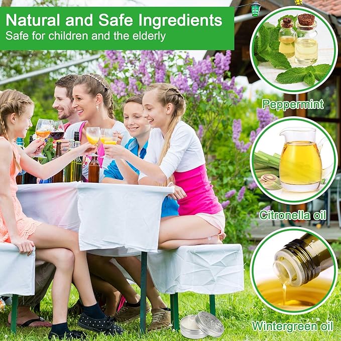 - Natural and Effective Mosquito Repellent - Contains a blend of essential oils like citronella and peppermint, providing natural protection that keeps mosquitoes and other small insects away from your home and yard.
