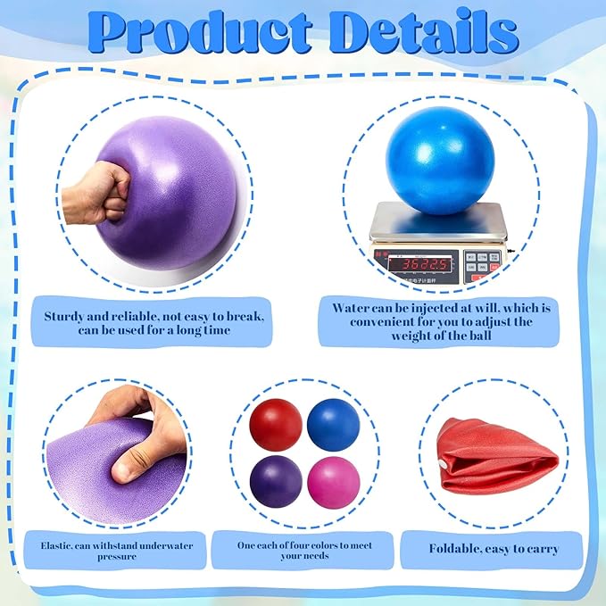 - Package Includes: you will receive 4 pieces of aquatic fitness water resistance ball in different colors, which comprise pink, blue, purple and red, with water injection pipes; The sufficient quantity and assorted colors can suffice your needs for daily training, and you can share them with others