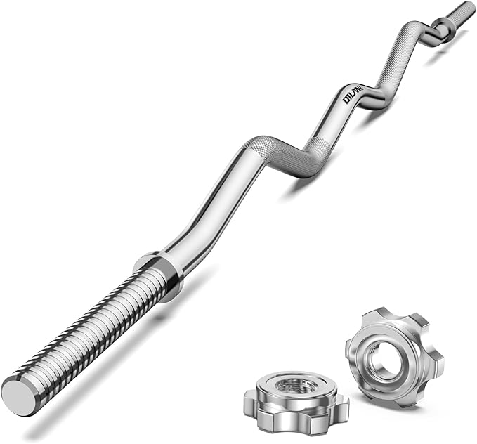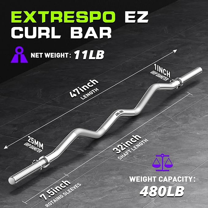 - SUPERIOR SPECS: The length of the olympic EZ bar is 47 in. High quality heavy duty solid steel, has the characteristics of high load-bearing capacity and flexibility. Our strength training bars can hold 280lbs weight capacity.