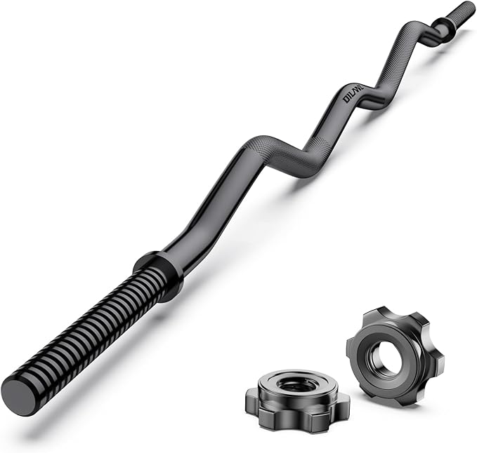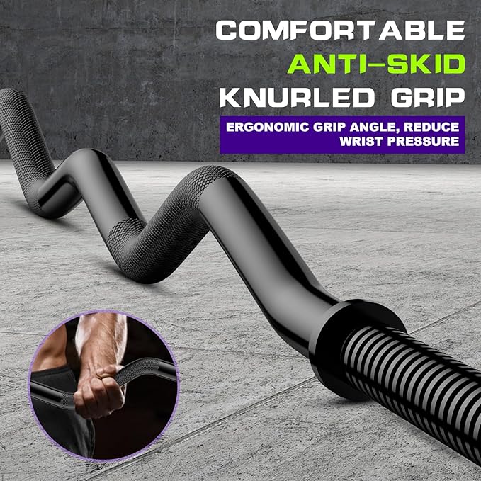 - SUPERIOR SPECS: The length of the olympic EZ bar is 47 in. High quality heavy duty solid steel, has the characteristics of high load-bearing capacity and flexibility. Our strength training bars can hold 280lbs weight capacity.