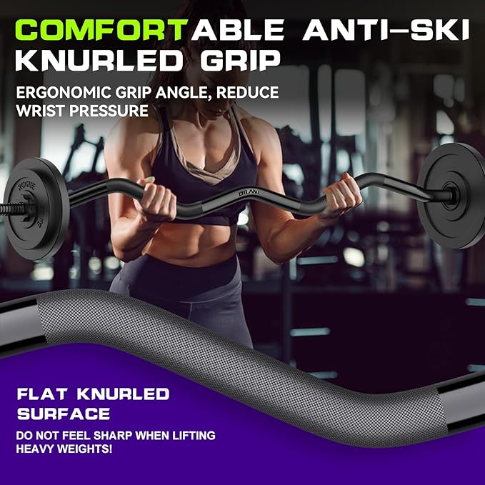 - EXERCISE MULTI-POSITION MUSCLES: Our EZ curl bar is helpful for biceps, triceps, abdominal muscles, etc. You can also cooperate with the fitness bench for training, and assist in the exercise of shoulder, back and leg muscles.
