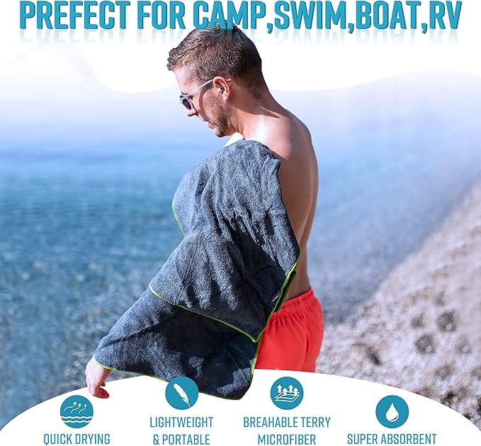 - FAST DRYING & SUPER ABSORBENT & Soft: Lighter weight than cotton towels and absorb 3-8 times its own weight in water. Stay soft for longer thanks to the microfiber fabric. Snap loop on towel for hanging. SKIN FRIENDLY - remarkable soft feel on your skin and face.