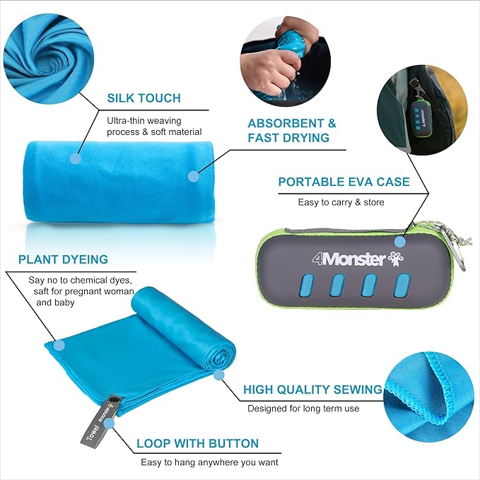 4Monster Camping Towel Super Absorbent-Quick Dry Microfiber Towel