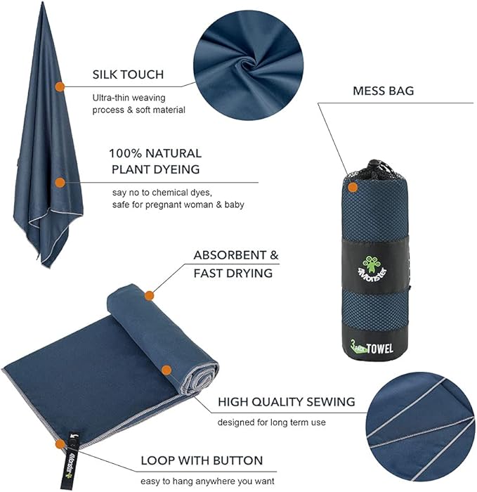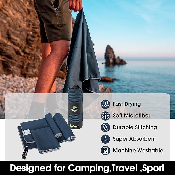 - 【3 Towels at 1 Pack】The package contains 3 towels of different sizes, (S:15''x15'') is a small hand towel and prefect for gym and yoga class,light and soft, absorb sweat quicker than you imagine.(M:30''x15'') is a prefect camping towel and you’ll find the size just designed for traveling.(L:60''x30''),the biggest towel in the package,the size is for shower,beach and pool,large yet light and portable.