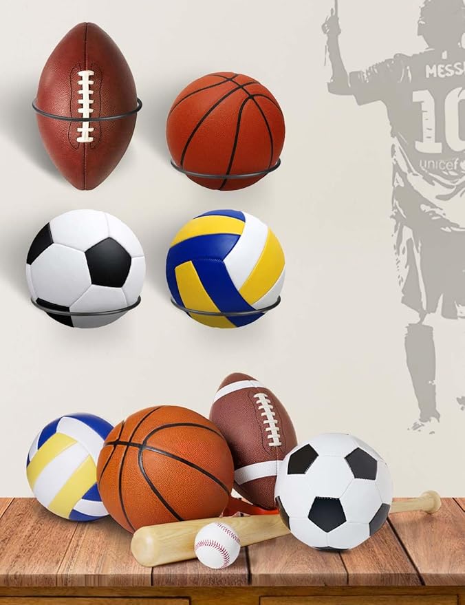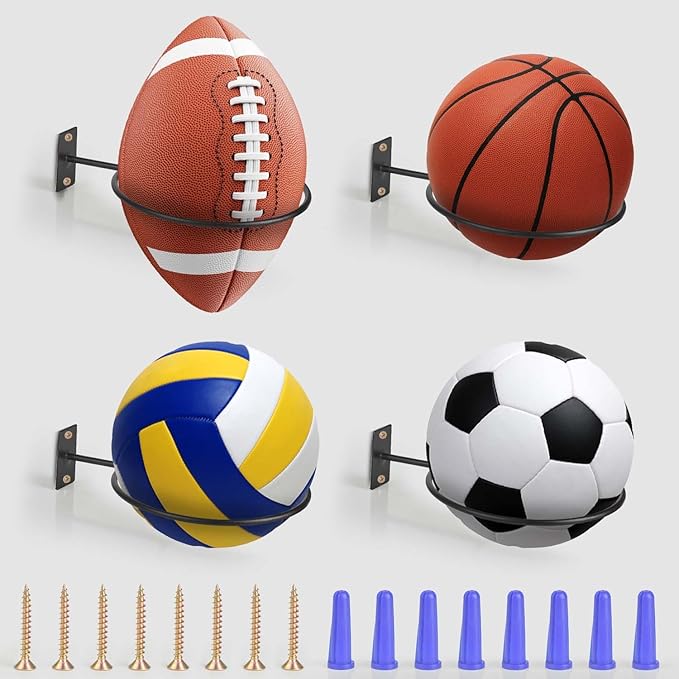 4Pcs Football and Basketball Holder Wall Mount Metal