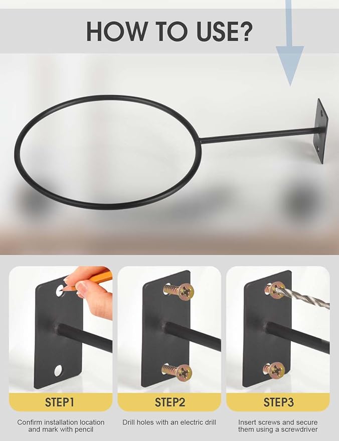 - Easy Installation: Each base is equipped with 2 expansion screws and designed with pre-drilled holes, making installation a breeze. Simply choose the desired location, and you can complete the installation in minutes, effortlessly embarking on your journey with the wall mounted basketball holder.