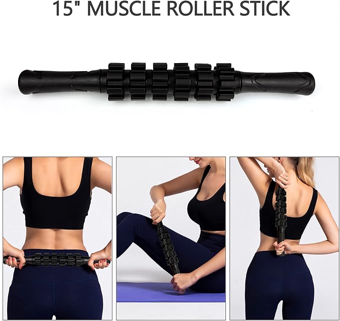 - 5 in 1 Foam Roller Muscle Massage Set: Package includes 1* hollow foam roller(13"*5"), 1* Muscle Roller Stick(15"), 1* massage ball(Φ2.5"), 1* stretching band(24"*2"), 1 storage bag; Protected by US Patent Nos: 9,345,921; 9,539,167 ; 9,656,112 ; 10,278,890 and 10,695,260