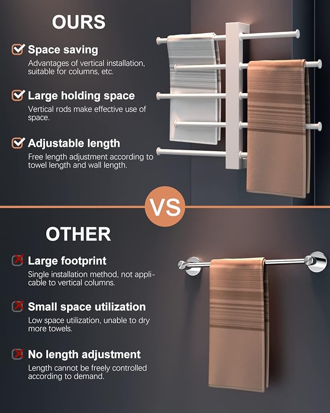 - Simple yet Modern Design: Smooth oil rubbed white adjustable towel bar with S hooks adds a sense of modern and stylish style to your home. And ZUEXT bath towel rack added 18/8 Chromium/Nickel content to protect against corrosion and rust, suitable for humid environments such as bathroom, kitchen, laundry room, patio, hotels and spas.