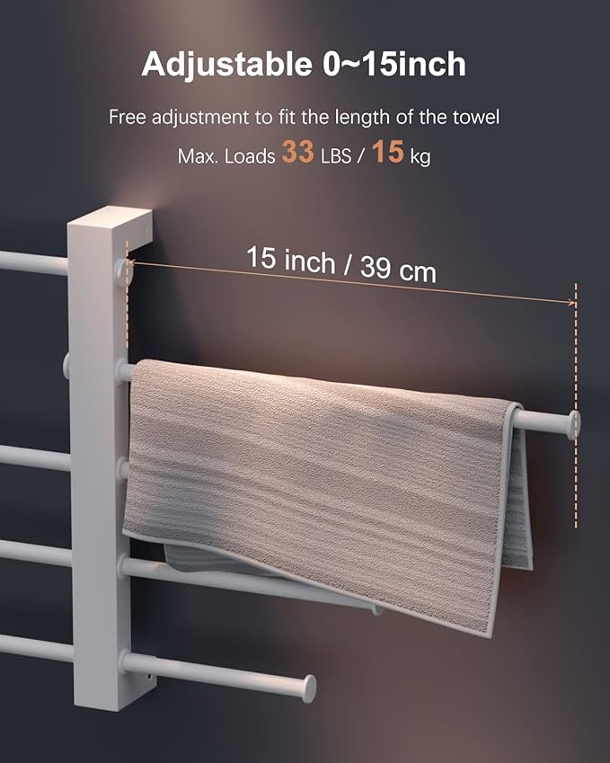 - Screw Mounted: Screws wall mounted installation with stainless steel screws and anchors in the package. Max. Load Weight of Bathroom Towel Holder: 33 lbs/15kg. Install must be smooth surface, but not limited to tile, wooden and wall, the Bridge sliding expandable towel bar can be used in kitchens, baths, and laundry rooms. The bars are positioned at equal distance from each other to ensure the towels stay fresh and ventilated.