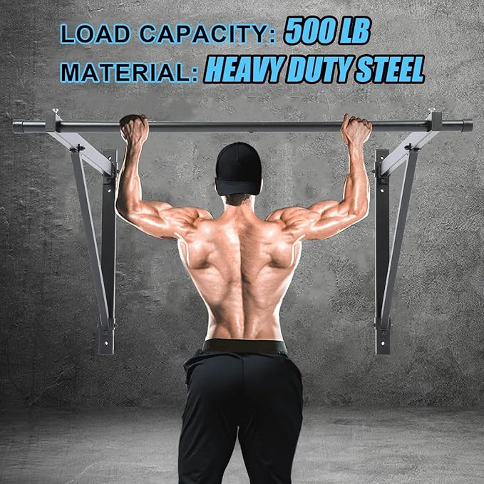 • High weight capacity: This wall-mounted pull-up bar can bear a weight of up to 500 pounds. After fixation, the firmness is better, and the weight-bearing capacity is stronger. It is suitable for exercise for people of different weights.