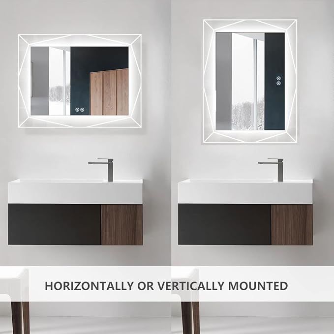 - LED mirror with touch button control. This mirror has a heating pad on the back that prevents fogging.
