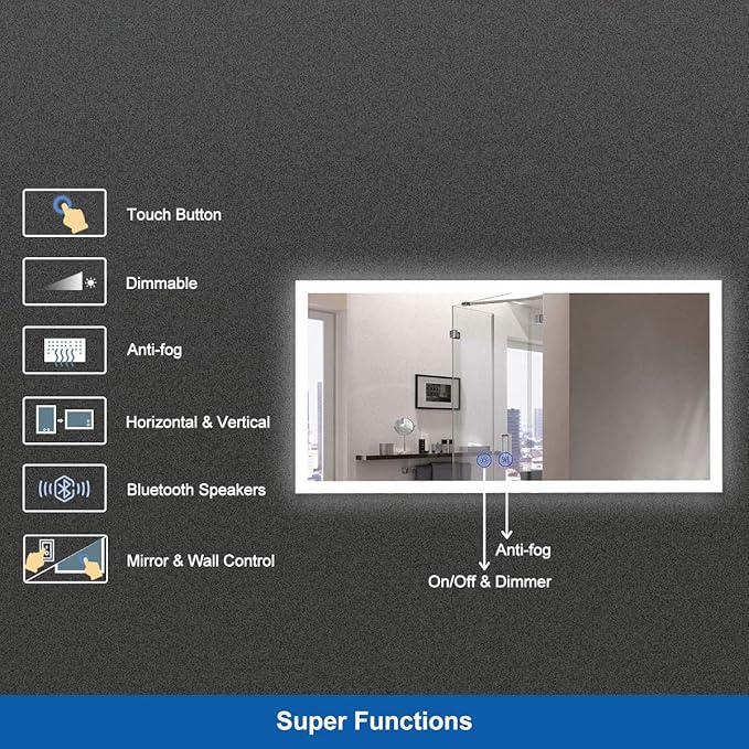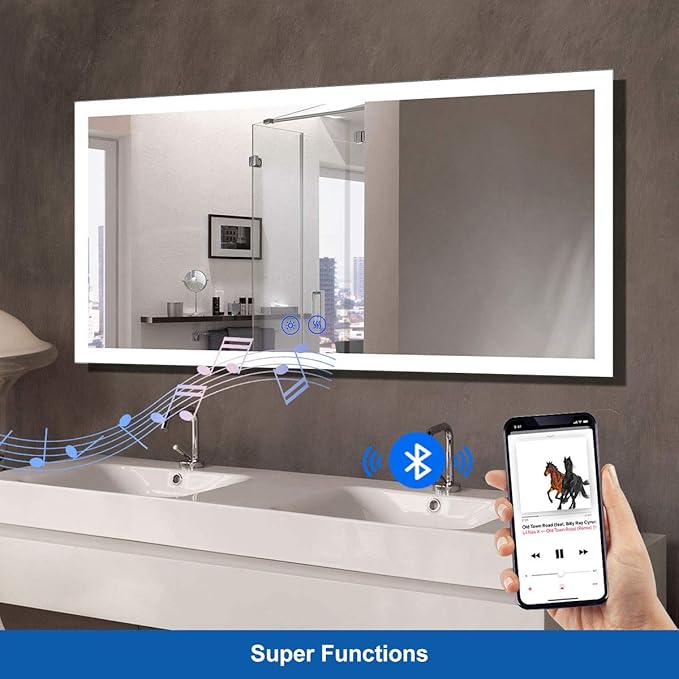 - Clock function: you can see time in the mirror when you wash and make up in the morning. Connect cell phone or computer for music play throught bluetooth.It can play songs with 360 degree surround sound.