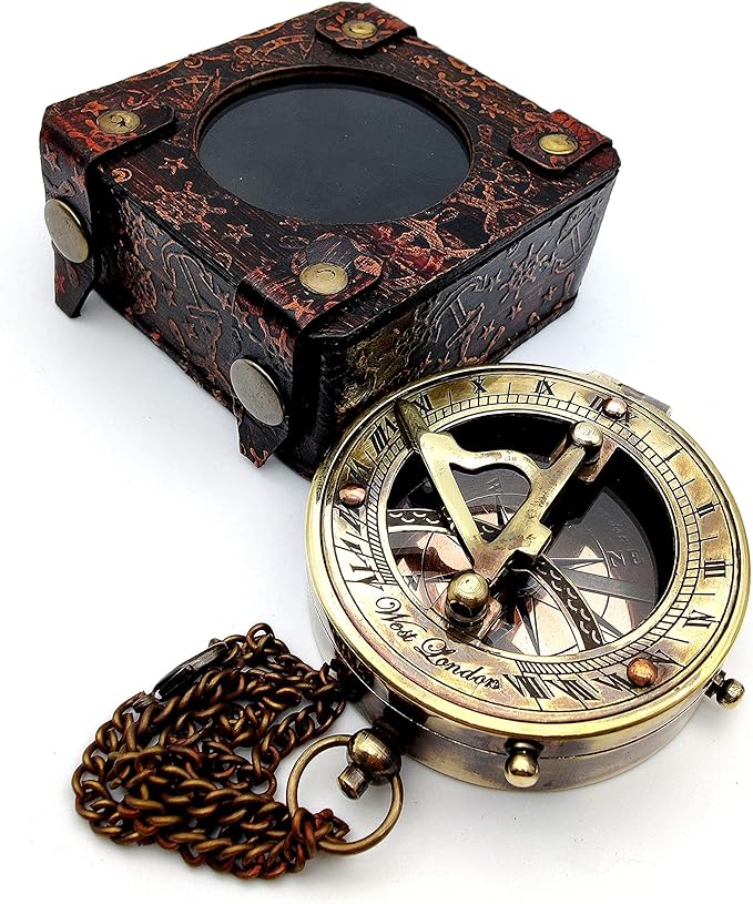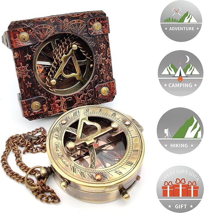 - GREAT GIFT FOR LOVE ONES : Nautical collectors, enthusiasts, and seafarer alike will love this stunning brass Sundial Compass. As a perfect present, this Sundial Compass for sale is a gleaming recreation of the classic antique compass that have guided sailors since the 1100s