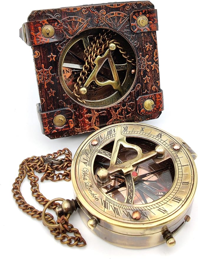 - PREMIUM QUALITY HANDMADE PRODUCT : Beautifully crafted solid brass pocket sundial compass with a rich, antique patina finish. The compass as well as the sundial are functional. It can be used for basic measurements & object of mathematical study. Transportable, handy design, easy to carry. A valued as decorative objects, literary metaphors