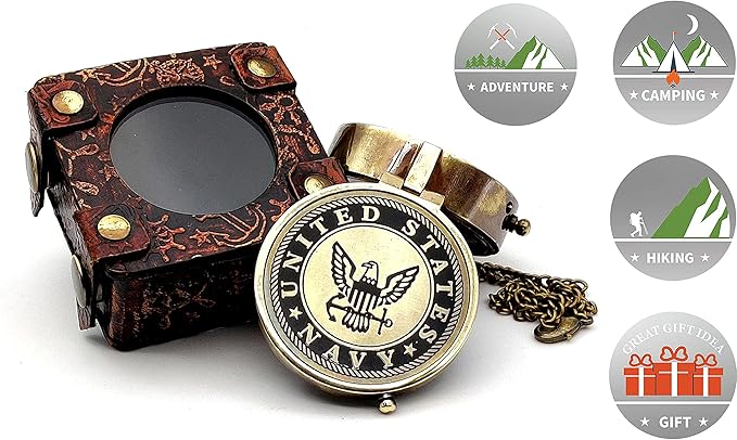 - 🧭 GREAT GIFT FOR LOVE ONES : Handmade Compass with brass chain and Leather Storage display Case Each compass is individually crafted. It can be an add on to your ancient and vintage collection. Perfect navy gift for your son and daughter. It can be gifted on occasions like housewarming party, birthday, promotion ceremony, Thanksgiving, Christmas, Easter, engagements, weddings, anniversaries etc.
