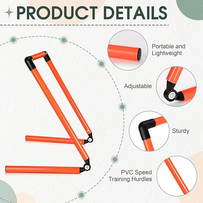 - 6 Speed Training Hurdles: you will receive 6 pieces of height adjustable speed hurdles in a single package; These are practical tools for improving quick steps and enhancing knee lifts; With sufficient pieces to satisfy diverse sports training needs, you will be well equipped to rake your game to the next level