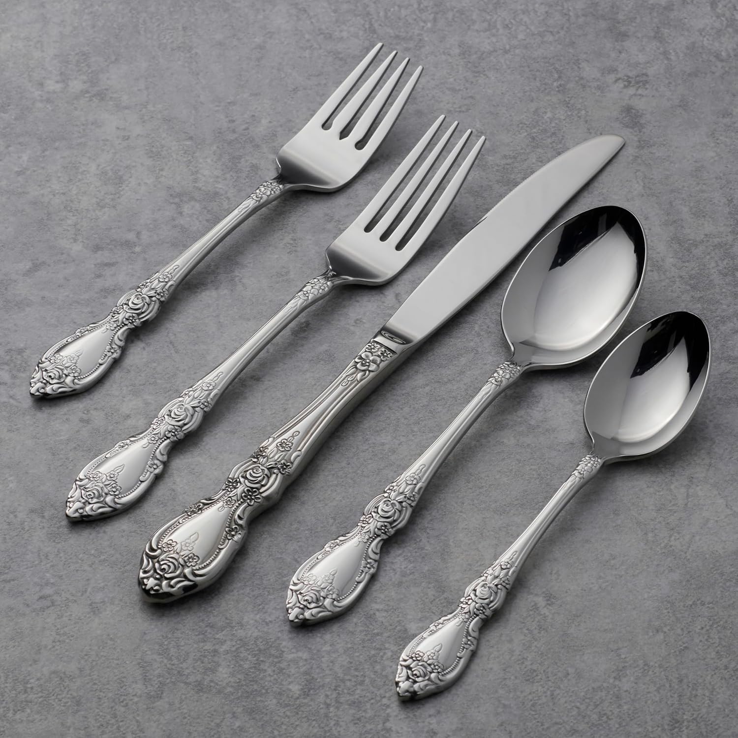 - WHY IT’S SPECIAL: Oneida's Wordsworth flatware celebrates intricate detail with its flower-adorned handles and high-end finish that beautifully catches the light. This design embodies elegance and opulence, inviting you to indulge in the richness of a bygone era.