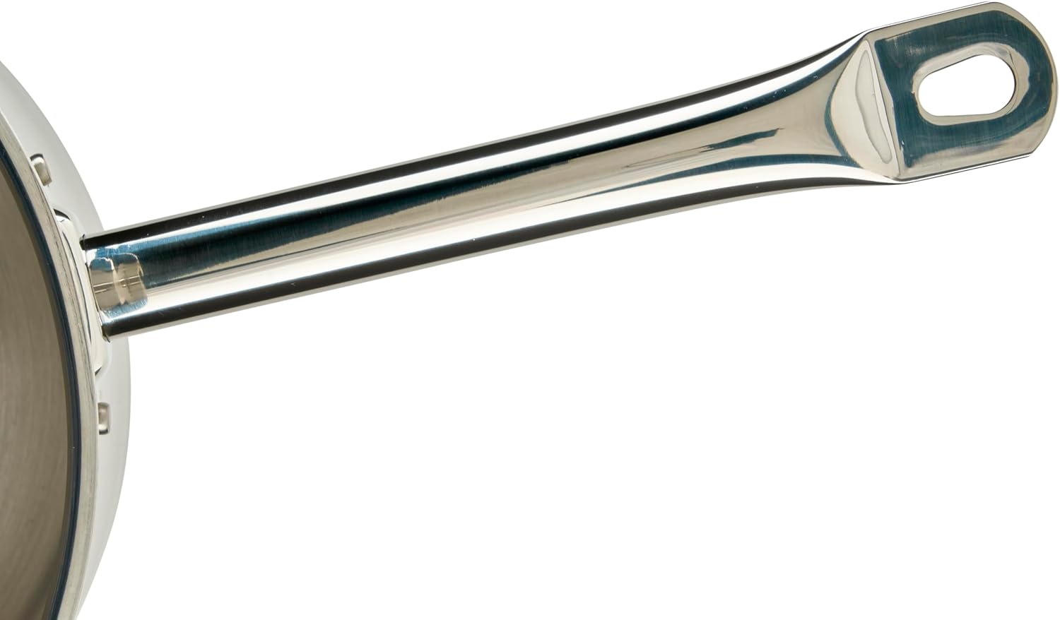 - Tri-Ply Construction – Aluminum core sandwiched between two layers of steel provides even heat distribution