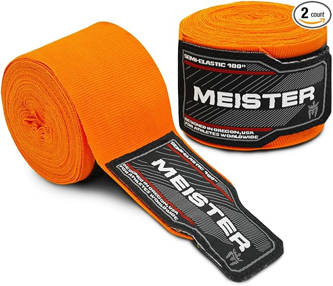 Meister Adult 180" Semi-Elastic Hand Wraps for MMA & Boxing (Pair)