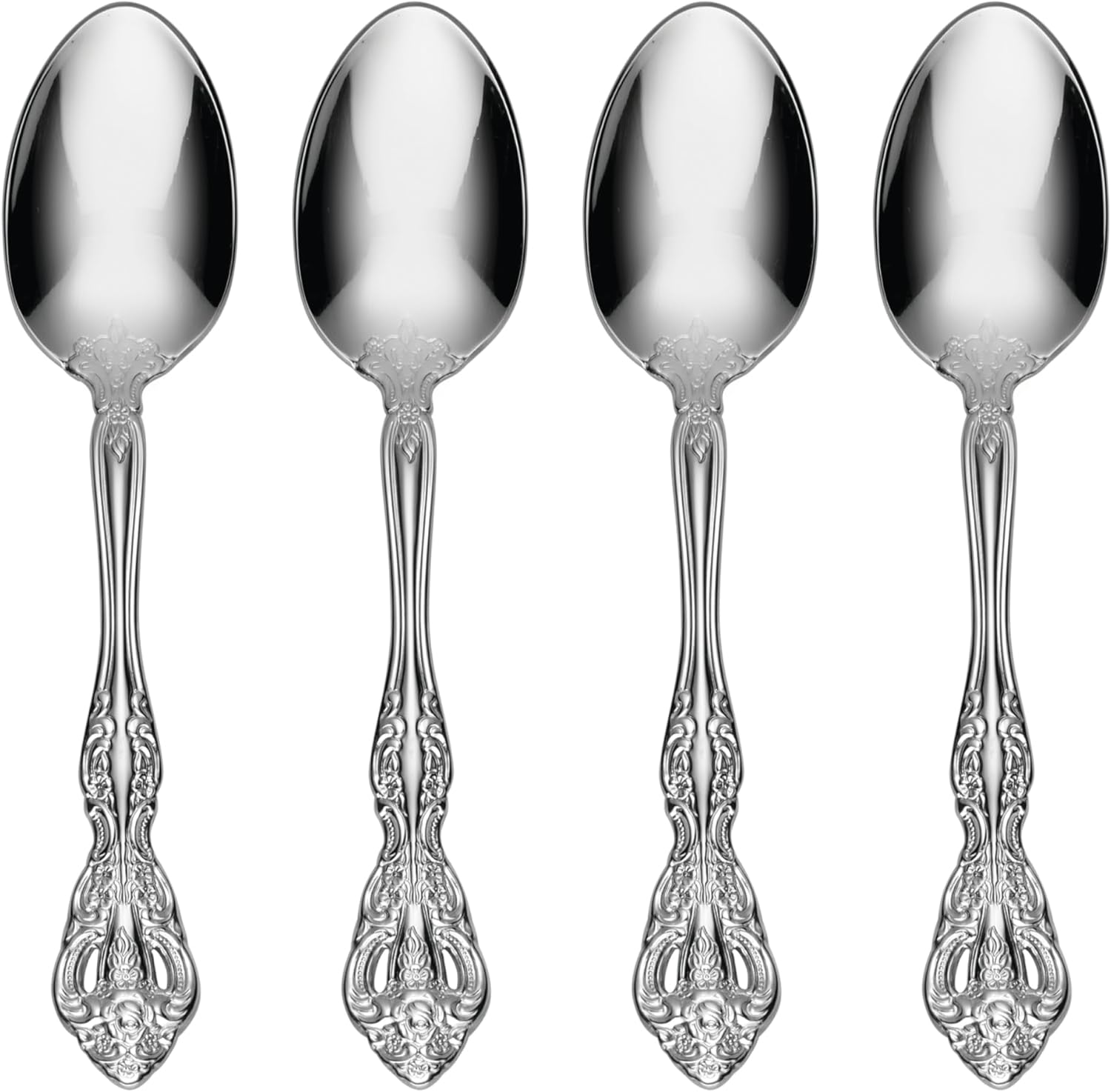 Oneida Michelangelo Fine Flatware Teaspoons, Set of 4 , 18/10 Stainless Steel, Silverware Set, Dishwasher Safe