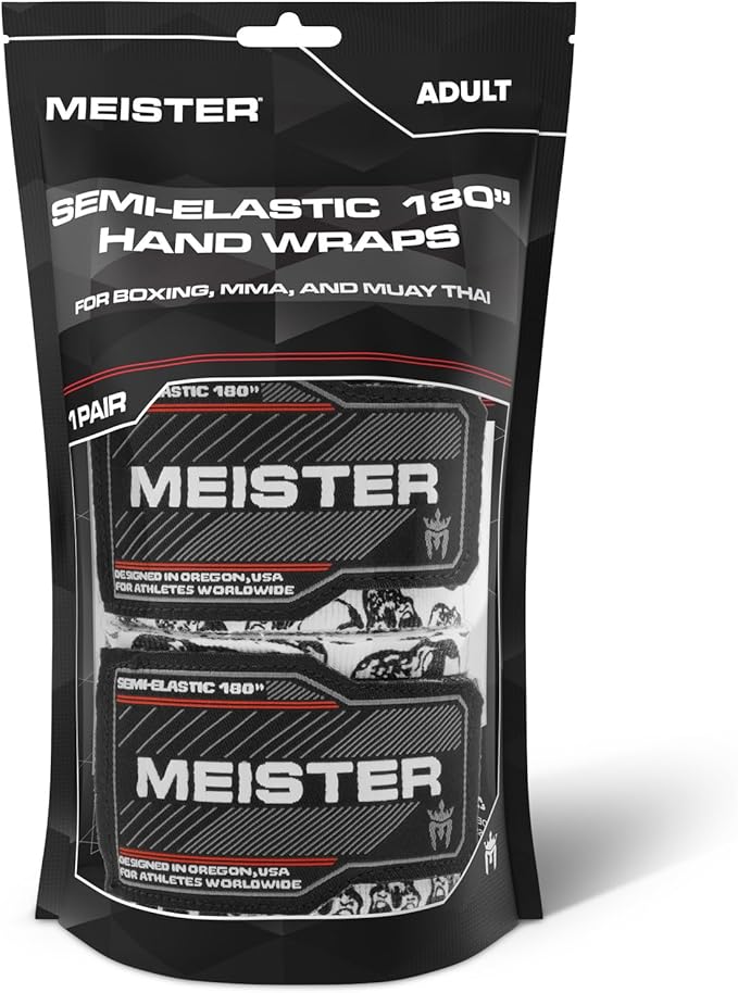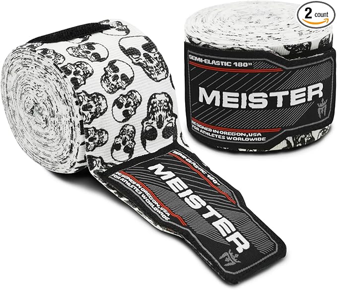 Meister Adult 180" Semi-Elastic Hand Wraps for MMA & Boxing (Pair)