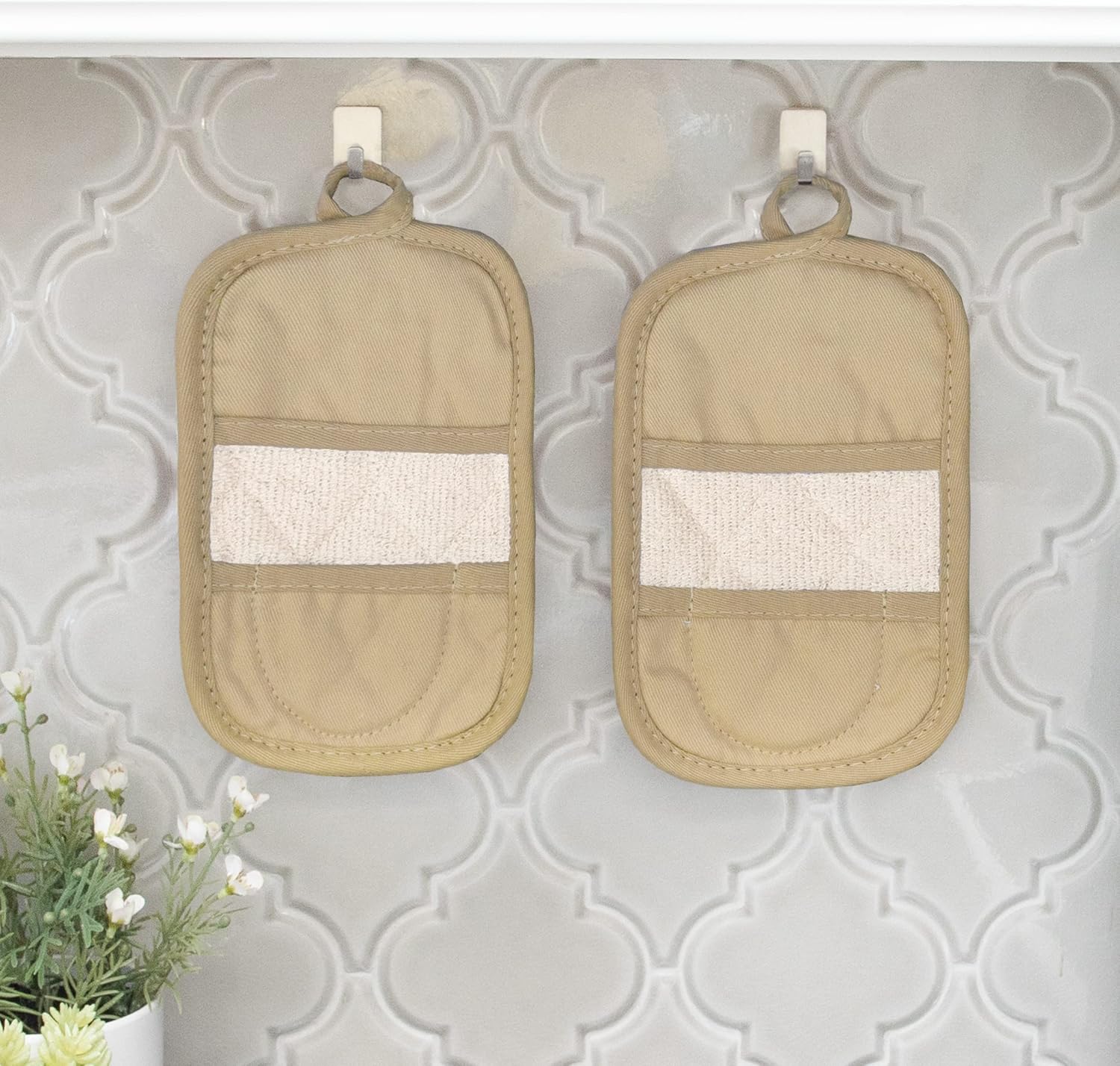 Ritz Premium Pot Holders & Heating Pads (4-Pack), 8.5" x 5.5", Heat Resistant, 100% Cotton Terry-Looped Pocket, for Kitchen and Barbeque, Biscotti