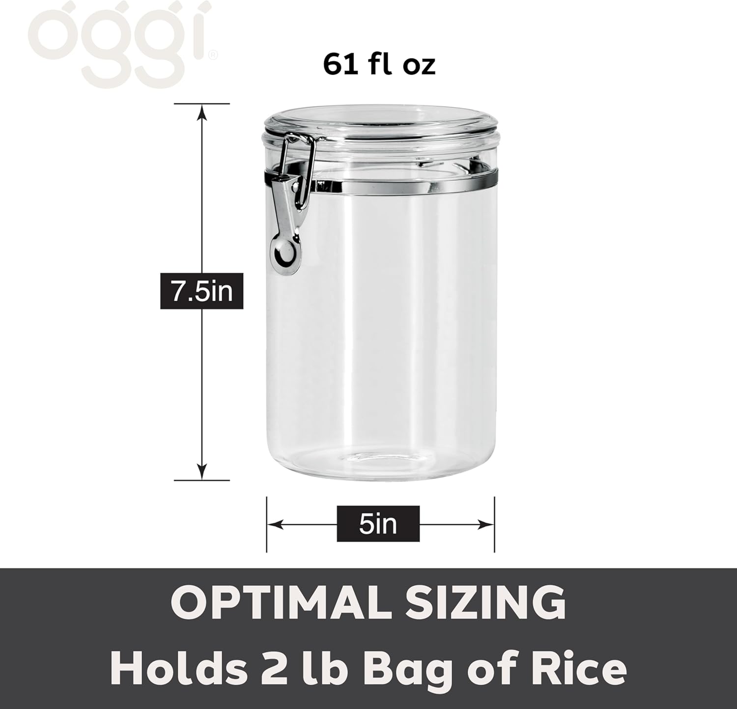 OGGI Medium-Sized Clear Canister with Clamp Lid, 61 oz - Large Airtight Food Storage Container, for Kitchen & Pantry Storage of Bulk, Dry Foods, Pasta, Flour, Sugar, Coffee, Rice, Tea, Spices & Herbs