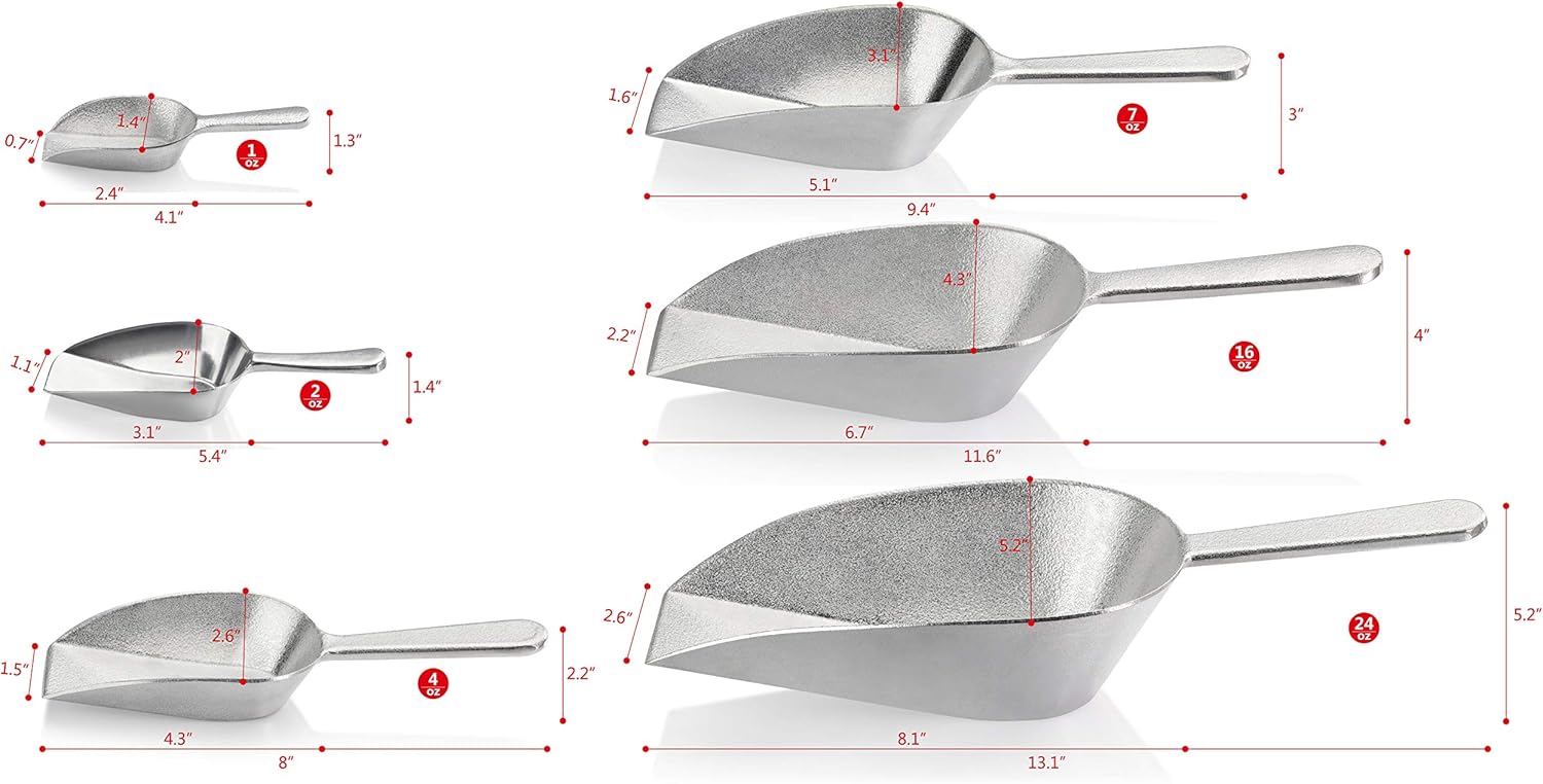 New Star Foodservice 34660 One-Piece Cast Aluminum Flat Bottom Bar Ice Flour Utility Scoop, 4-Ounce, SIlver